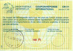Dieser Schein kann in allen Mitgliedsländern der Weltpostvereins eingelöst werden. Sein Wert entspricht dem Mindestentgelt für den Versand einer gewöhnlichen Vorrangssendung oder eines gewöhnlichen Luftpostbriefes nach dem Ausland.